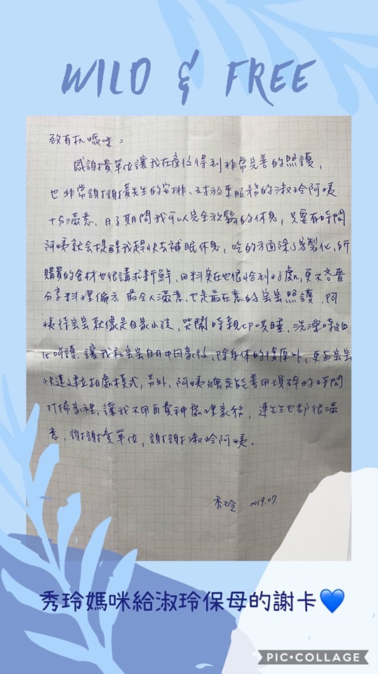 最令人滿意、也是最在意的寶寶照護,阿姨對帶寶寶就像是自家小孩,哭鬧時親切哄睡,洗澡時細心呵護,讓我和寶寶自月中回家後,除身體的復原外,更與寶寶快速建立相處模式,另外,阿姨總是能善用瑣碎的時間打掃家裡,讓我不用再費神處理家務,連先生也都很滿意,謝謝貴單位,謝謝淑玲阿姨。