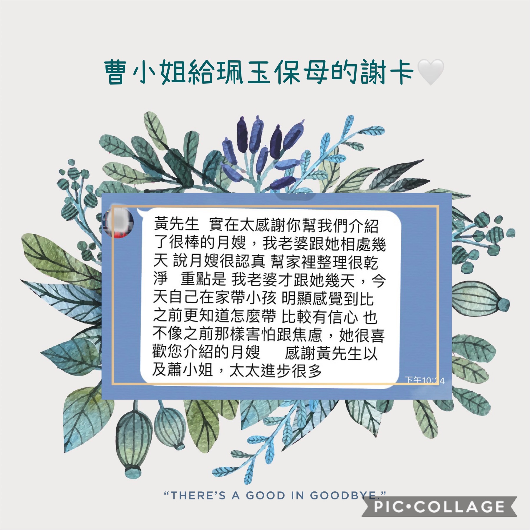 客戶好評 by Naturalmammy_usr 2020 年 8 月 29 日 實在太感謝你們幫我們介紹了很棒的月嫂,我老婆跟他相處幾天,說月嫂很認真,幫家裡整理很乾淨,重點是我老婆才跟他幾天,今天自己在家帶小孩,明顯感覺到比之前更知道怎麼帶,比較有信心,也不像之前那樣害怕跟焦慮,他很喜歡您介紹的月嫂,感謝黃先生以及蕭保母,太太進步很多