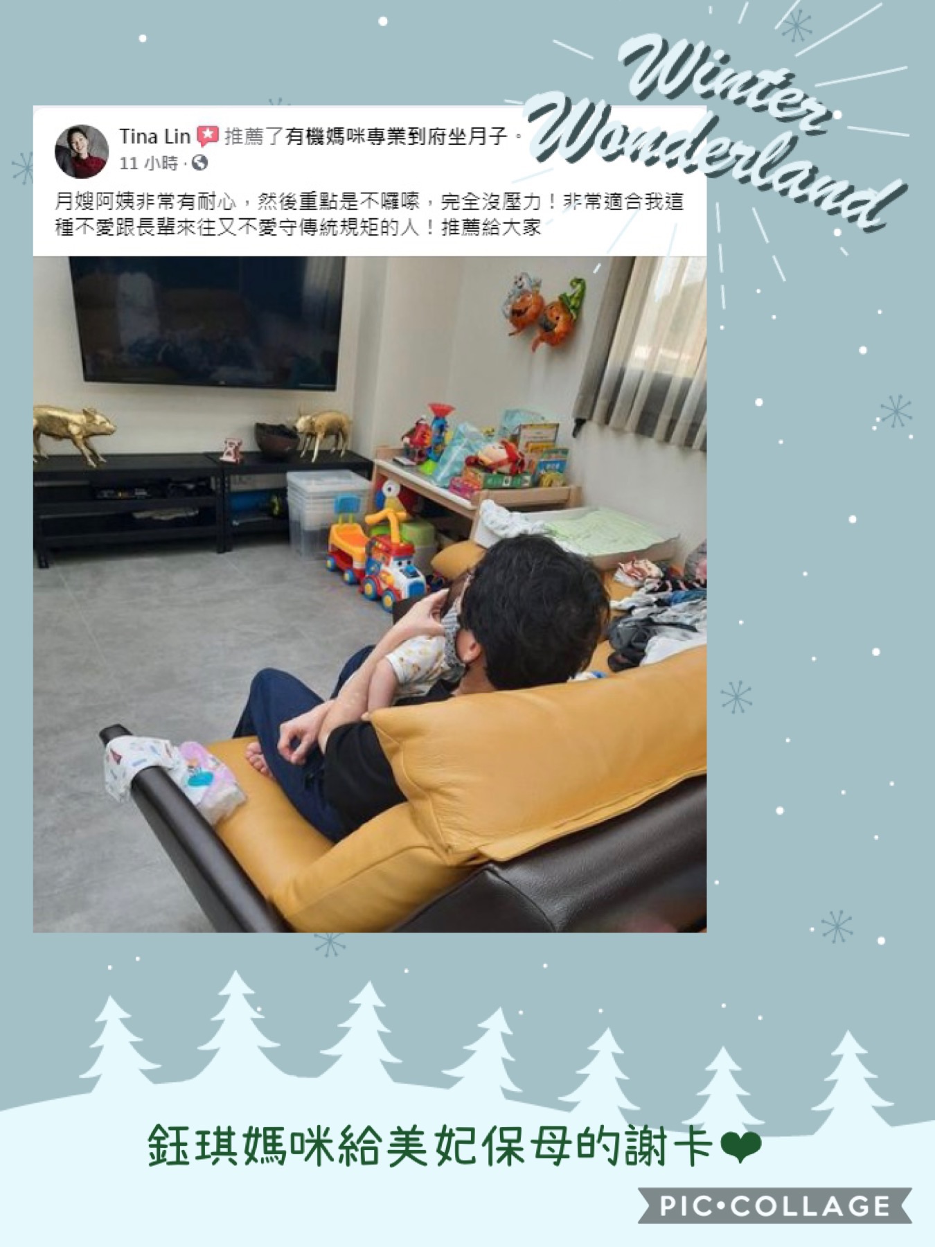 月嫂阿姨非常有耐心,然後重點是不囉嗦,完全沒壓力!非常適合我這種不愛跟長輩來往又不愛守傳統規矩的人!推薦給大家