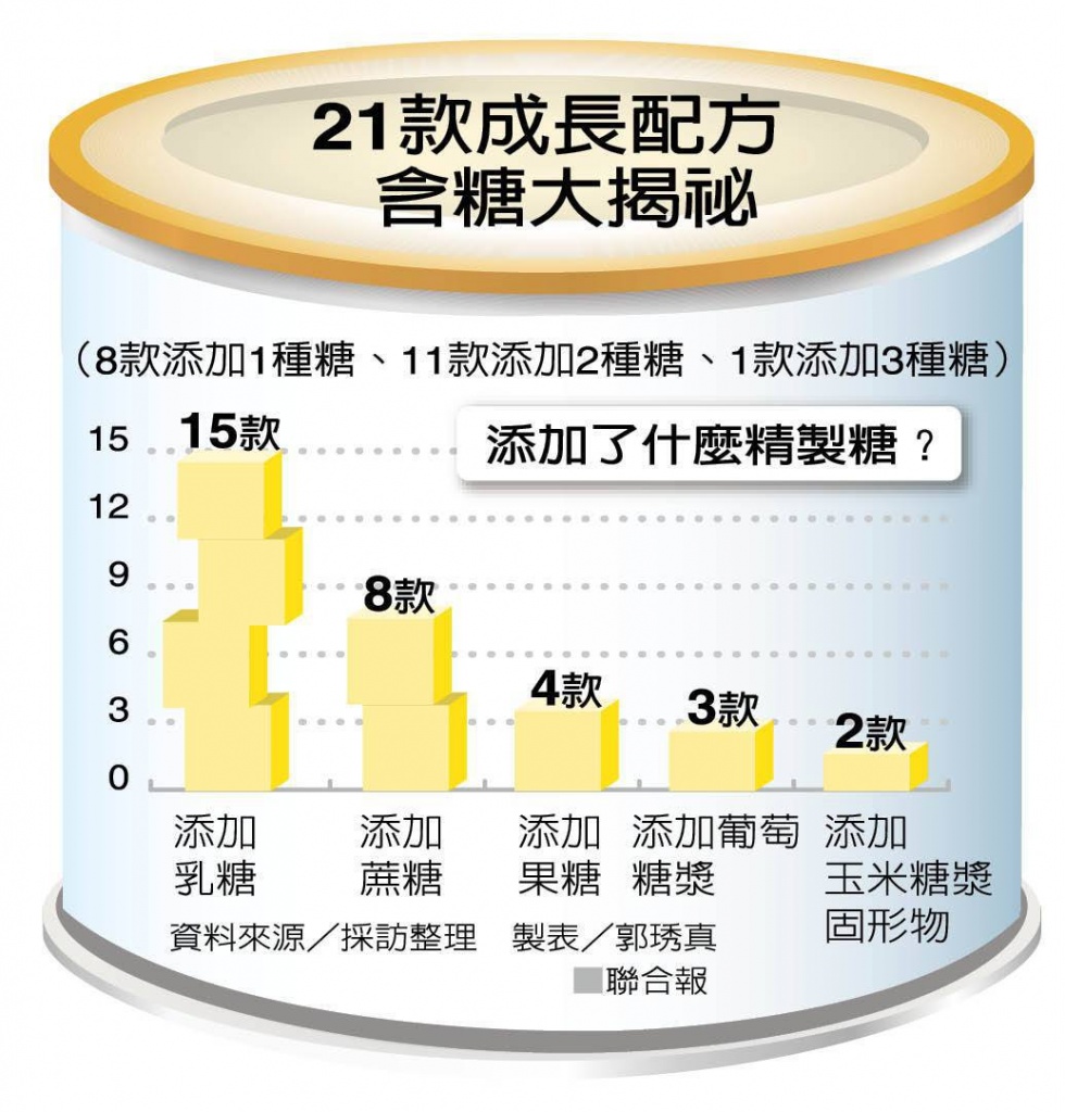 「成長配方」、「成長配方奶粉」跟「奶粉」不一樣! 在 1 歲以前的配方奶粉規範很嚴謹,比較不會有營養過剩的疑慮,但 1 歲之後的配方奶卻不一樣,這時孩子已經可以開始吃副食品,所以1 歲後的配方奶被認為是「一般食品」,開始有了添加糖、香料等額外的添加物,平均而言,幼兒成長配方的醣含量比一般鮮奶多了30~120%,若與純乳粉相比,則多了30~75%,喝起來香甜潤滑,讓孩子不知不覺養成喜歡甜食、香料食物的習慣。
